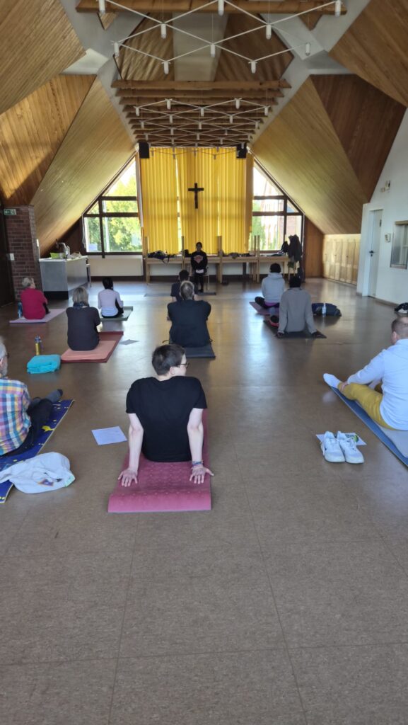 Am Samstag den 21.03.26 fand wieder eine Yogastunde mit Jina statt. Diesmal waren wir im Pfarrheim St. Johannes Baptist in Leichlingen zu Gast, um Geist und Körper in Einklang zu bringen.
